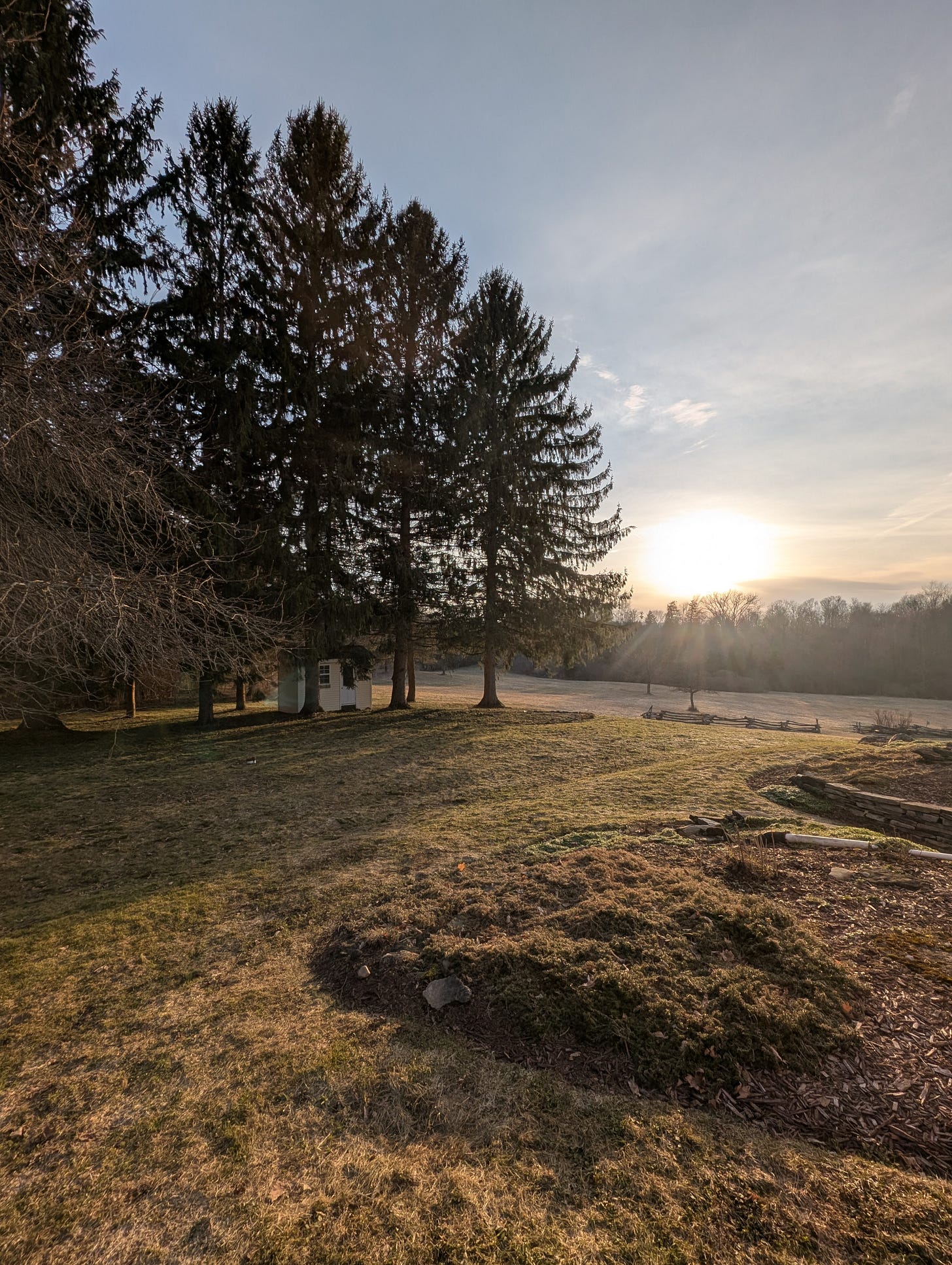 It took a while to find a new space but after more than a year of looking, viewing, putting in offers, etc. we found our new plot, actually it’s more like a small farm or arboretum. The new garden covers 15-acres encompassing a home from the 1840s. The garden is a mix of open areas (~5 acres) and a mix of wetland and upland forested areas. The area around the house has some several small formal garden beds and ornamental fencing. Our intention is to refresh and plant more natives in these few existing garden beds. Also dotted around are nest boxes for small birds such as Eastern Bluebirds (Sialia sialis), of which there are many flying about already. It seems that the forested areas were not a priority for the former owners and therefore haven’t been managed properly, other than some trails cut through and random where random brush piles were placed. An additional complication is that the house, being from 1840 has had very DIY laissez faire repairs done through time and is in need of significant and expensive attention.